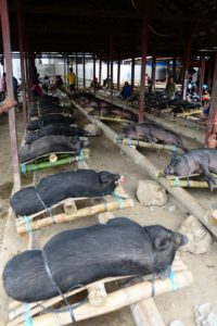 Eén van onze dispuutsgenoten (Egbert S.) bezocht in augustus 2018 de varkensmarkt in Rantepao (central Sulawesi). Dit in het kader van een MCP onderzoek naar het welzijn van varkens. De behandeling van varkens liet, zo bleek, sterk te wensen over. Levende varkens lagen vastgebonden op houten palen. Dit is prompt gemeld bij de Indonesische autoriteiten. Het vlees blijft natuurlijk wel goed vers op deze manier.