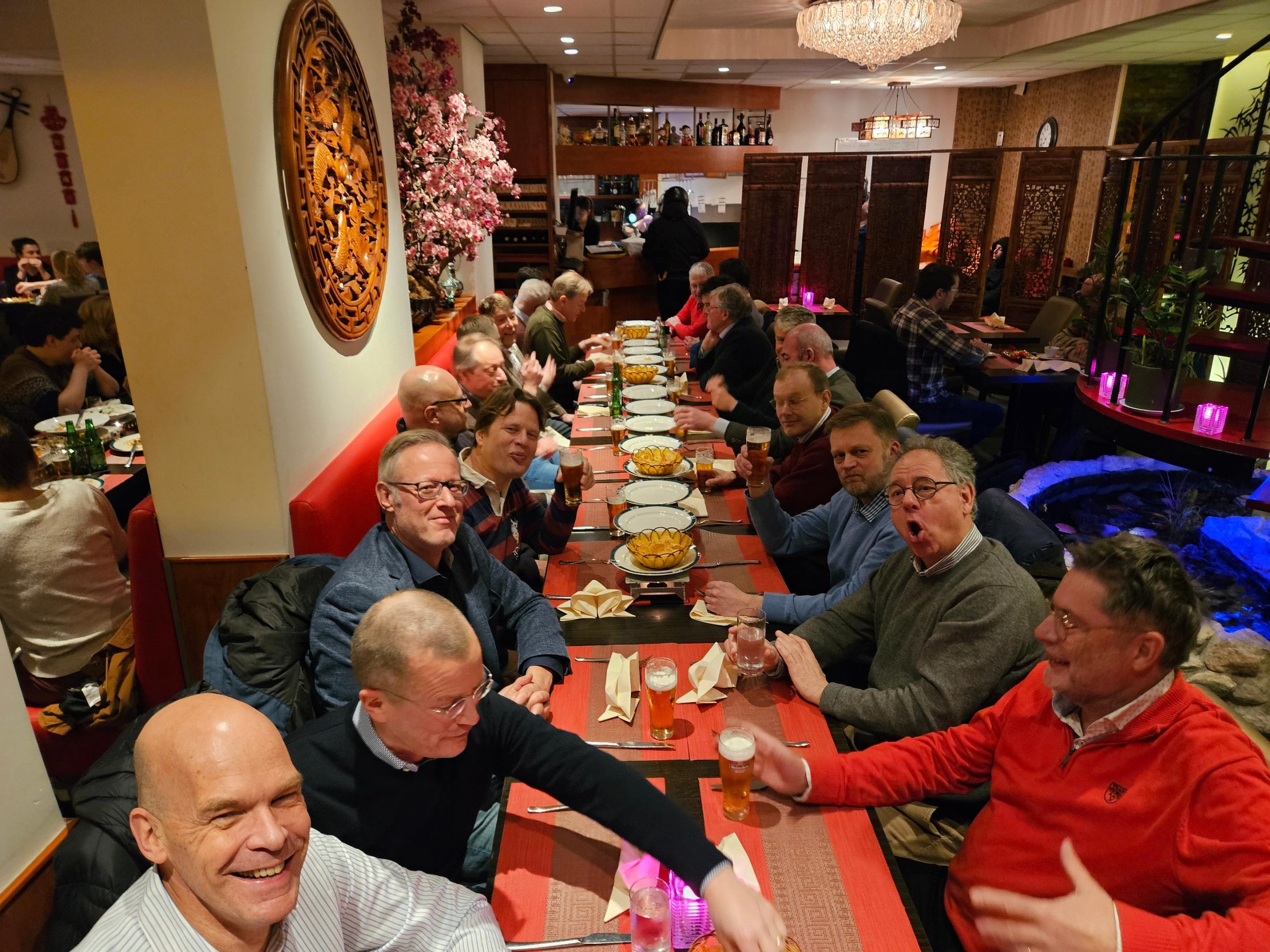 Op zaterdag 13 januari 2024 verzamelden wij eerst in de Waag voor een borrel en wandelden toen naar Woo Ping. Twee van ons hadden een Woo Ping allergie opgelopen en moesten elders (meer op stand) gaan dineren. Daarna met zijn allen naar Quintus (Oh ja, Boommarkt) voor de nieuwjaarsborrel. Daar waren wij nog niet eerder geweest. Een goed begin van het nieuwe jaar!